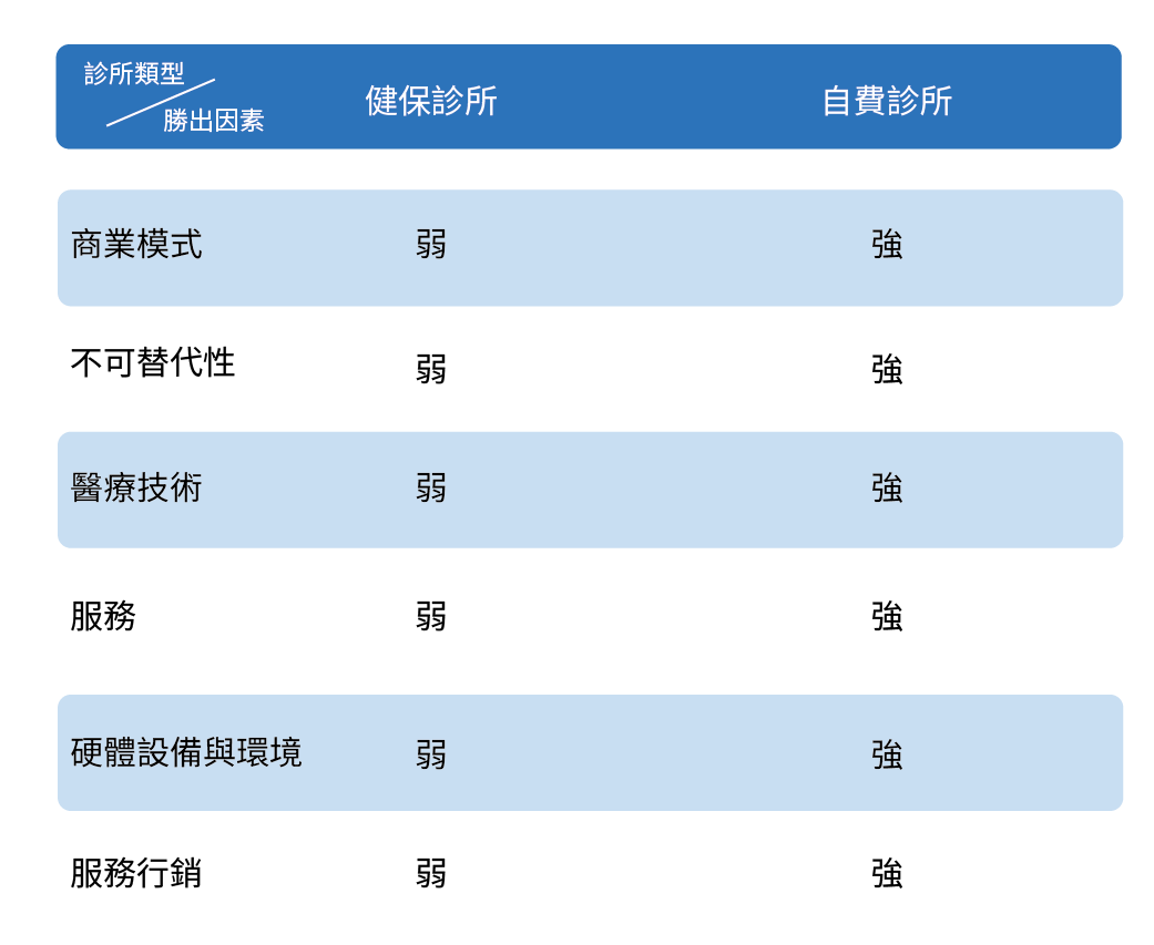 - 醫療技術:診所的醫療優勢與醫療團隊的價值,這也是診所的定位。